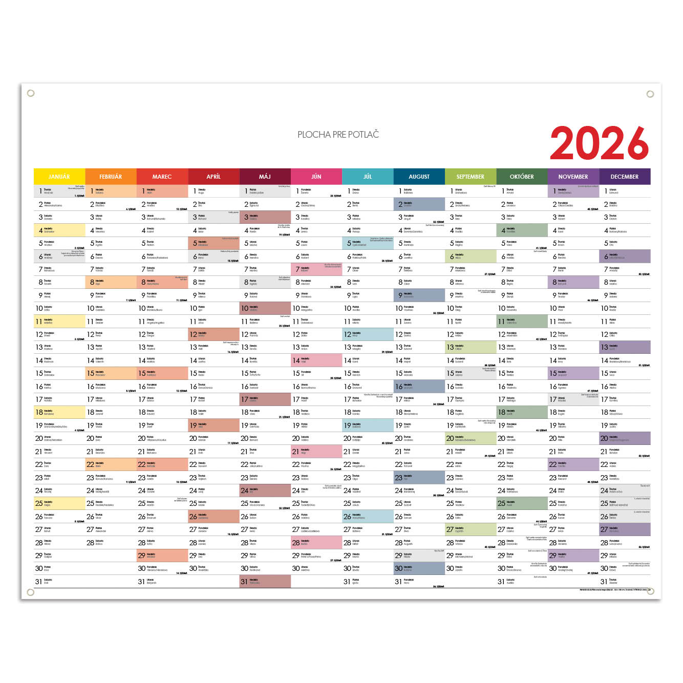 Nástenná plánovacia mapa 2026 SK s očkami na zavesenie - 124 x 100 cm - farebná