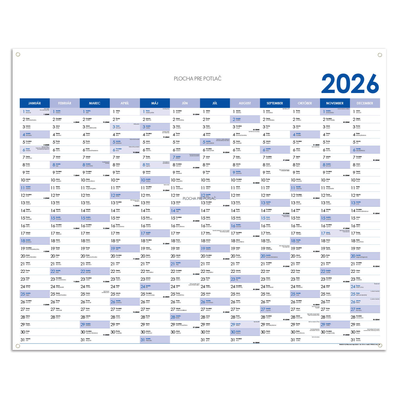 Nástenná plánovacia mapa 2026 SK s očkami na zavesenie - 124 x 100 cm - modrá