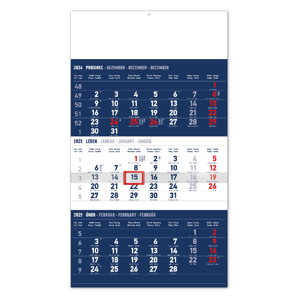 Nástenný kalendár 2025 3-mesačný štandard modrá – s českými menami CZ