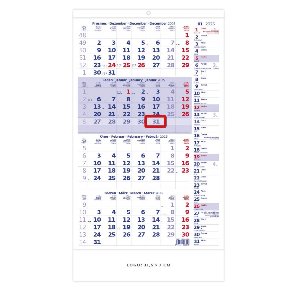 Nástenný kalendár 2025 - Štvormesačný modrý