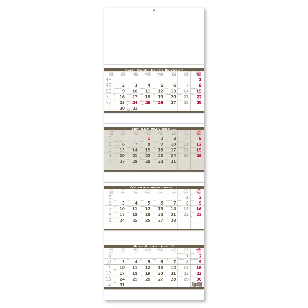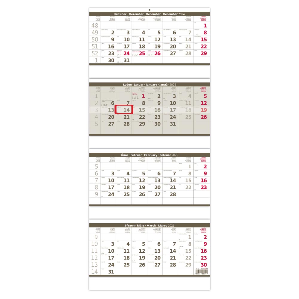 Nástenný kalendár 2025 - Štvormesačný skladaný sivý