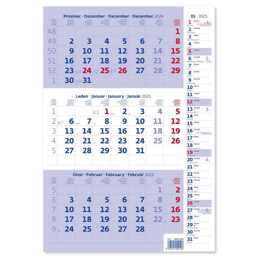Kalendárium: CZ 3mesačné menné so sviatkami vybraných európskych štátov