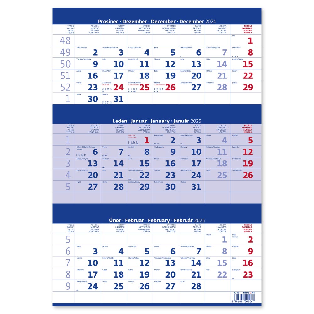 Nástenný kalendár 2025 - Trojmesačný modrý