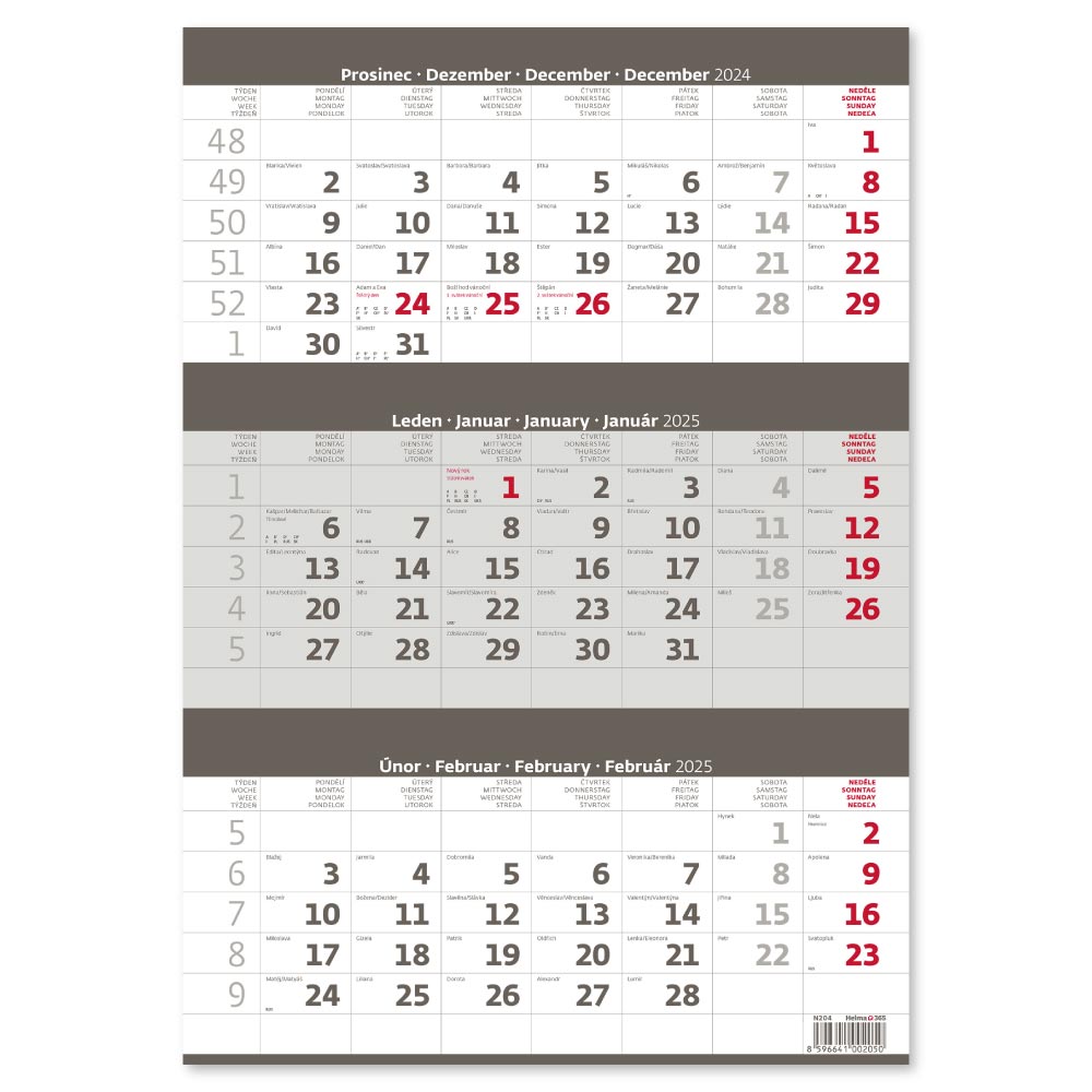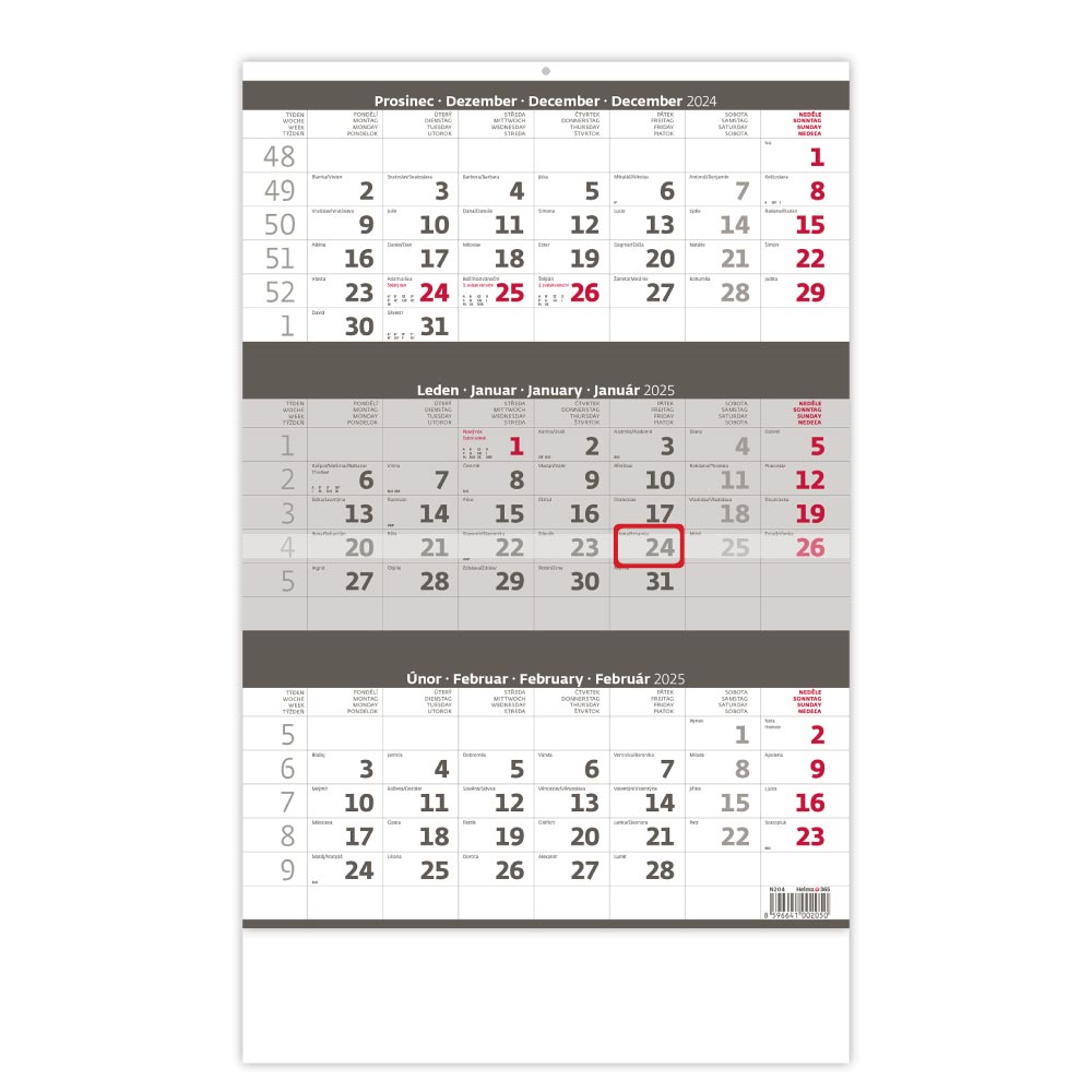 Nástenný kalendár 2025 - Trojmesačný sivý