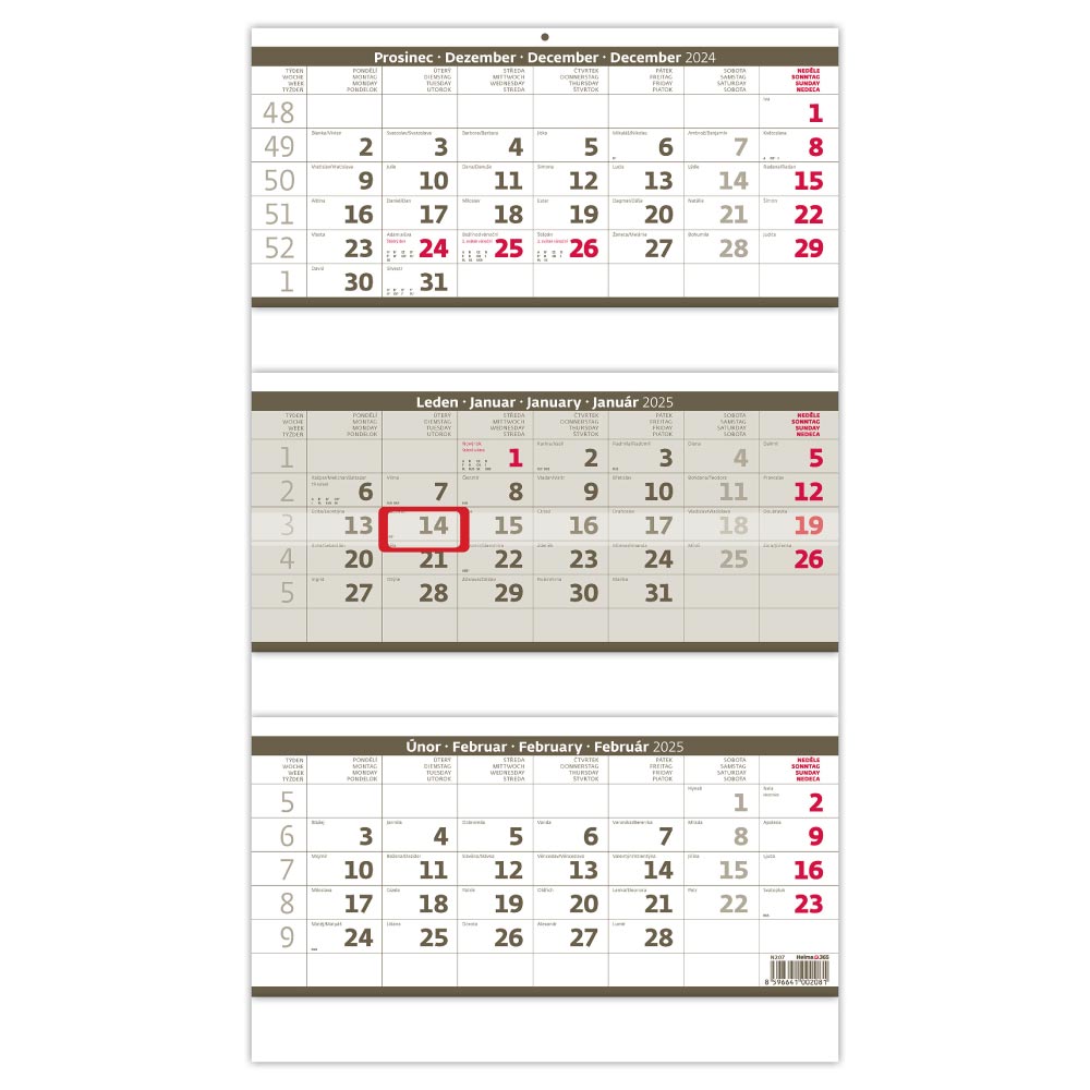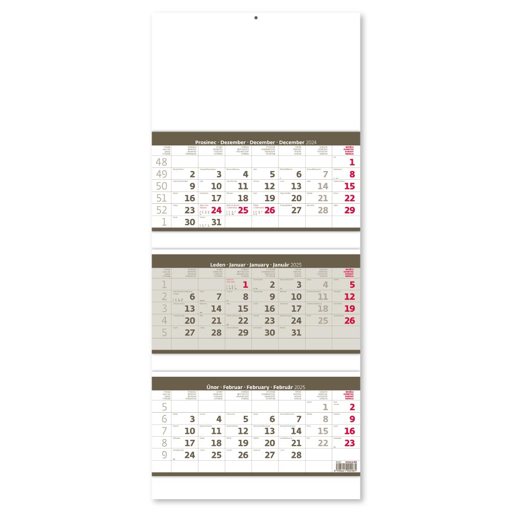 Nástenný kalendár 2025 - Trojmesačný skladaný sivý