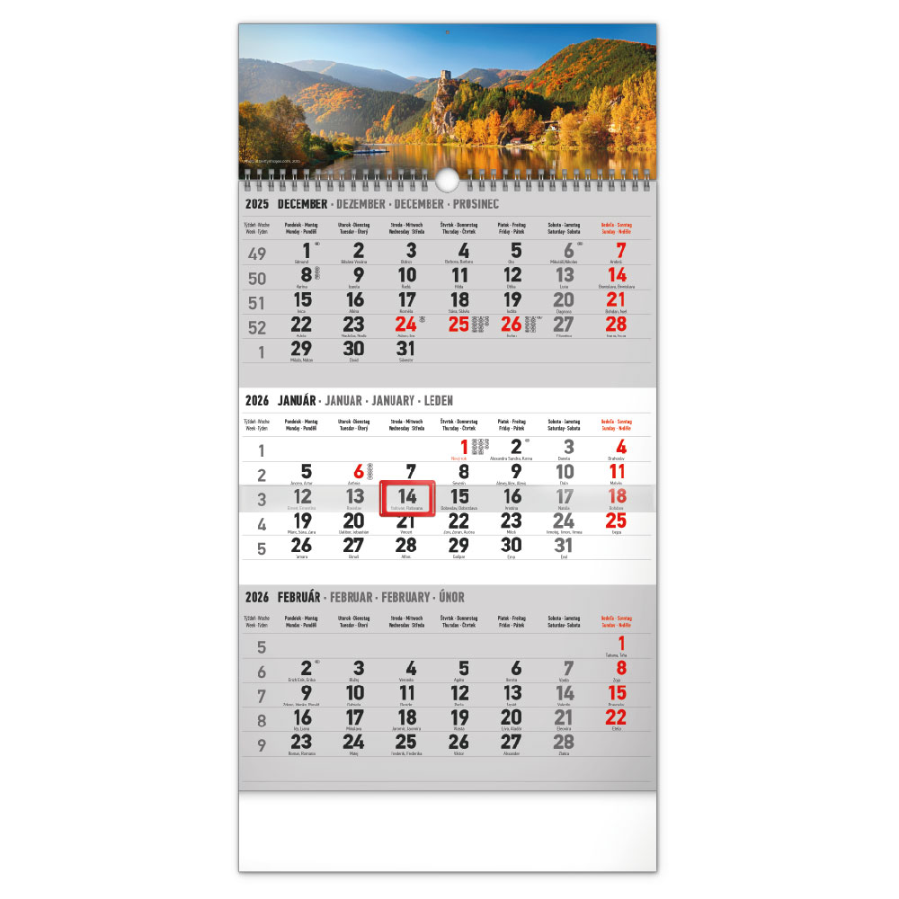 Nástenný kalendár 2026 3-mesačný Krajina šedá - so slovenskými menami