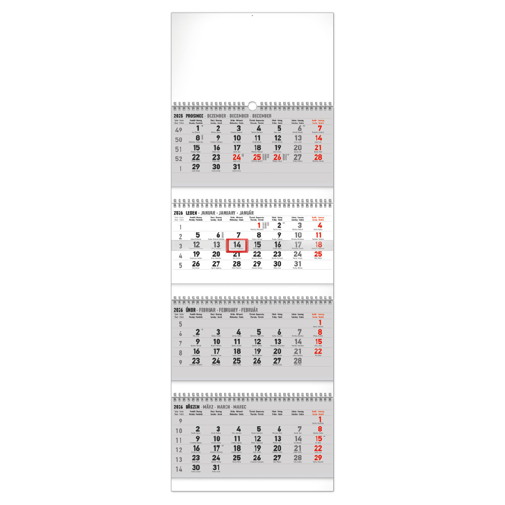 Nástenný kalendár 2026 4-mesačný štandard skládací šedá - s českými menami