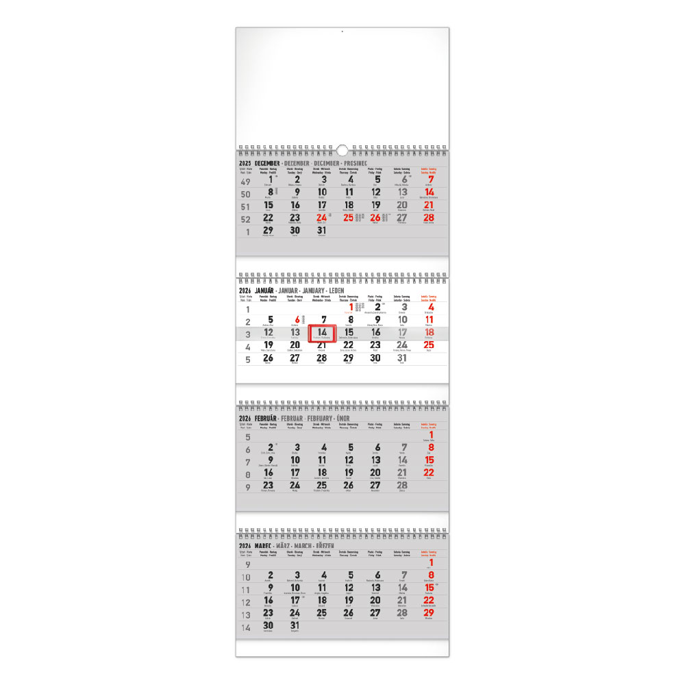 Nástenný kalendár 2026 4-mesačný štandard skládací šedá - so slovenskými menami