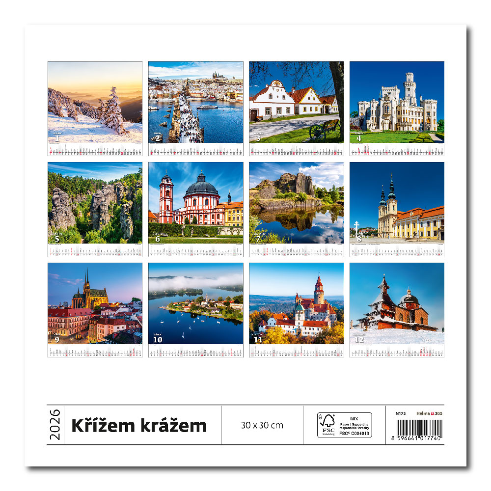Nástenný kalendár 2026 - Krížom krážom Českou republikou