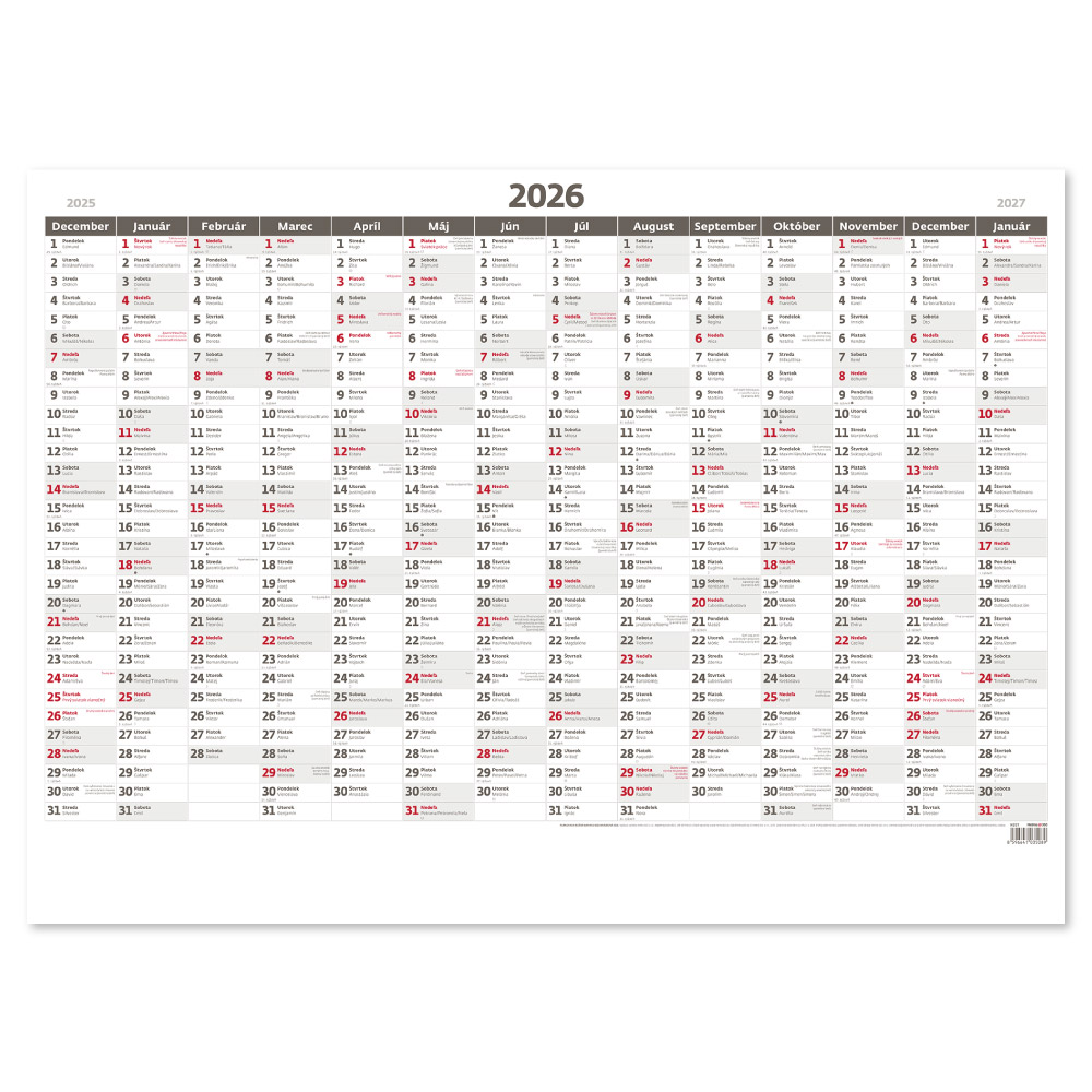 Nástenný kalendár 2026 - Plánovací ročná mapa A1 bezobrázková