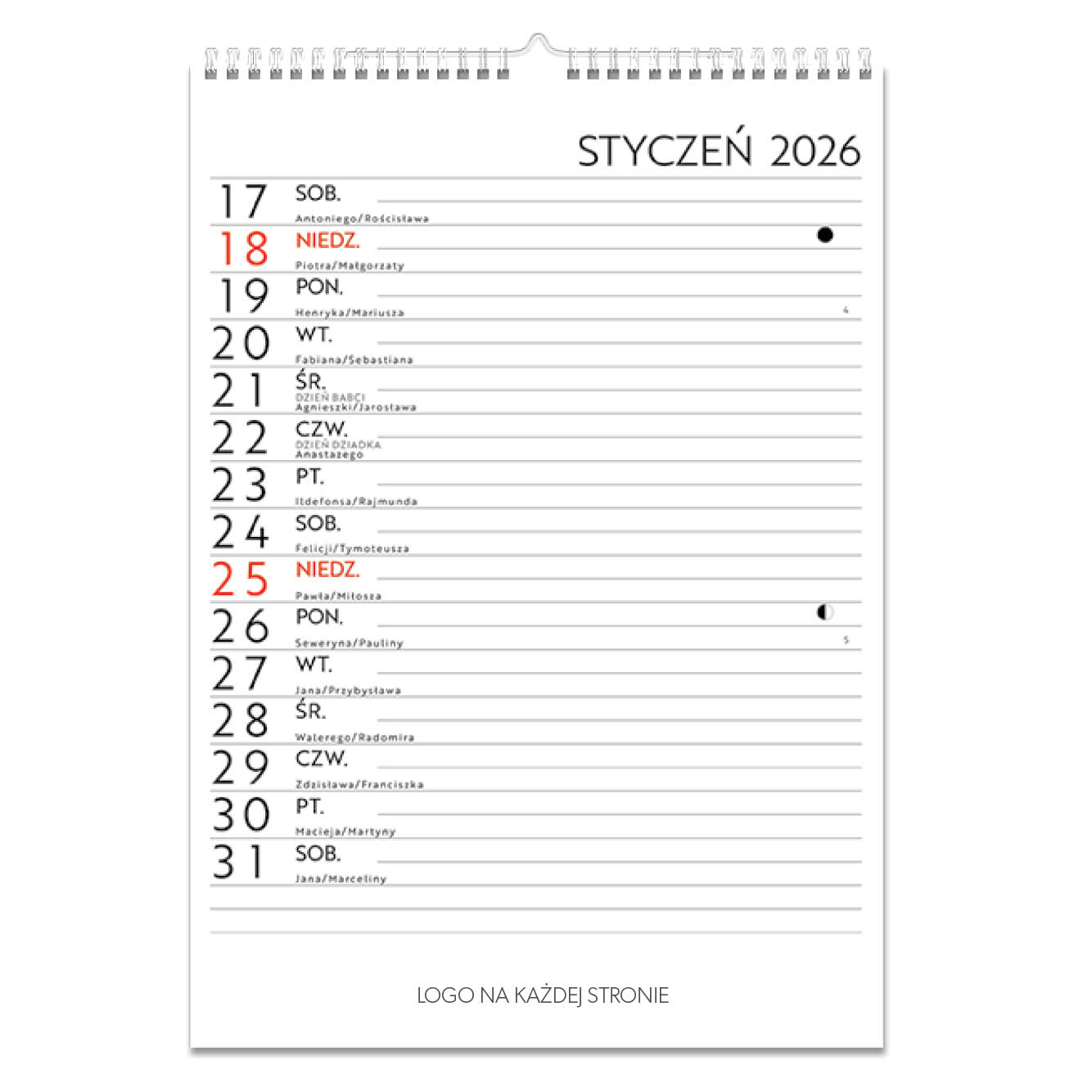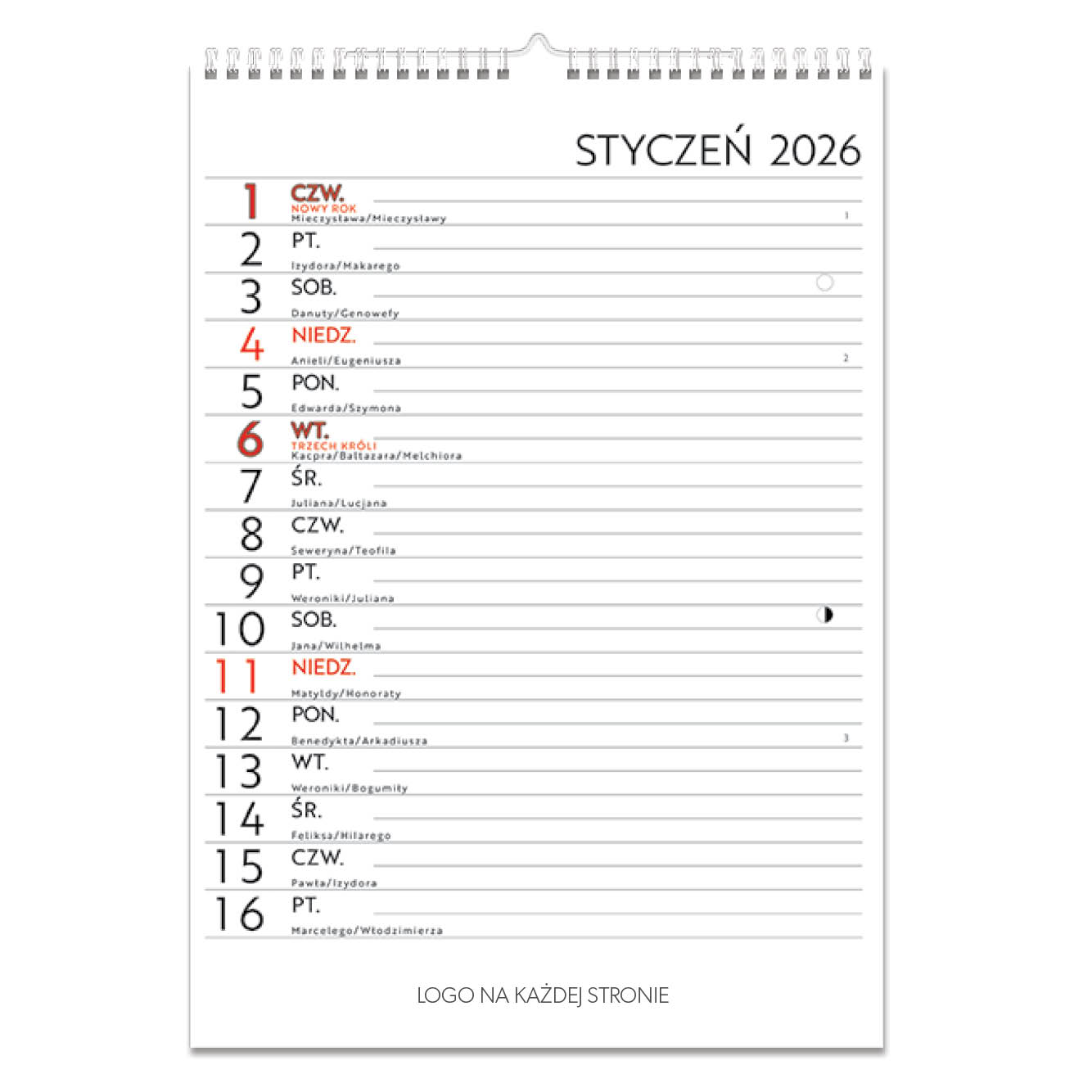 Nástenný kalendár 2026 poľský Štrnásťdňový