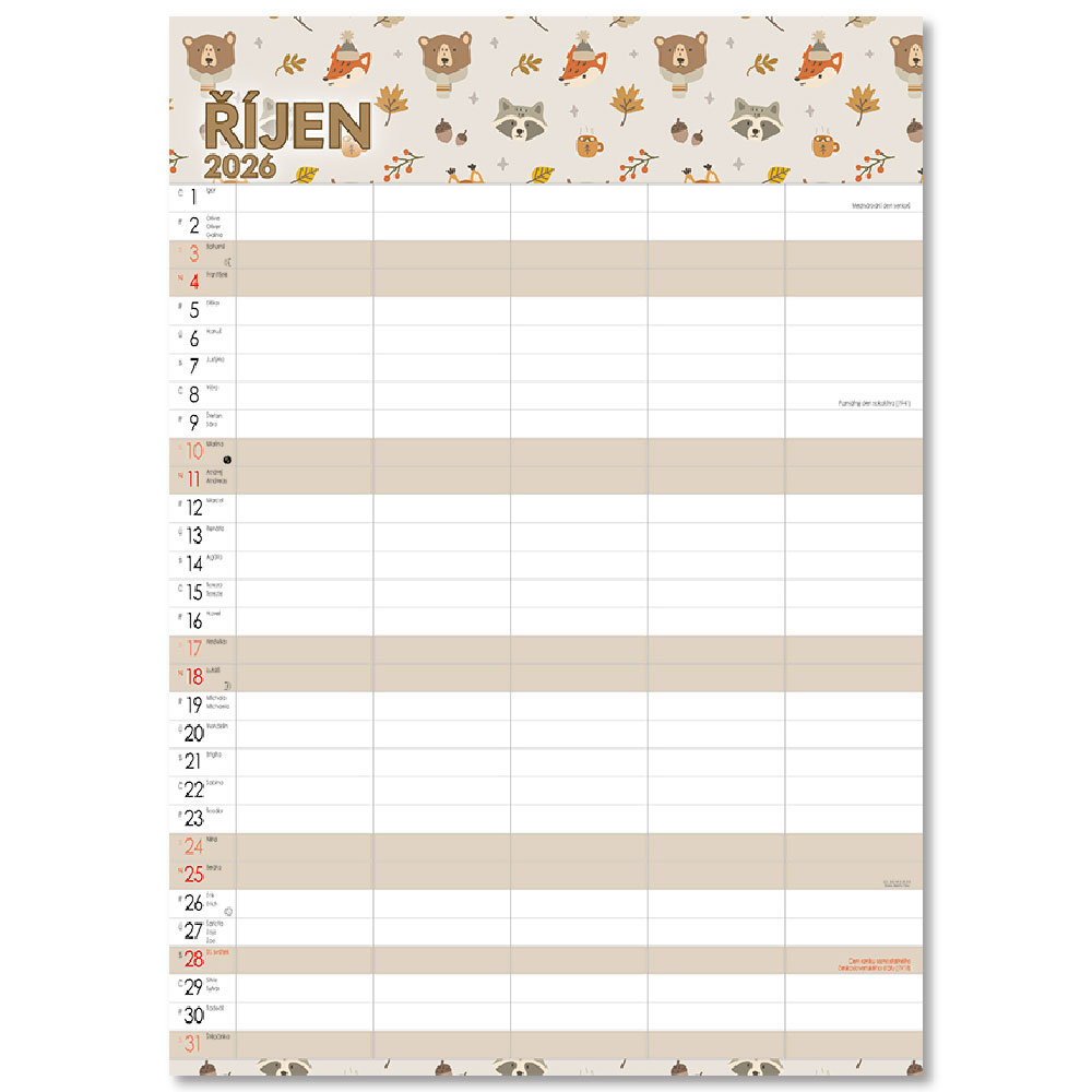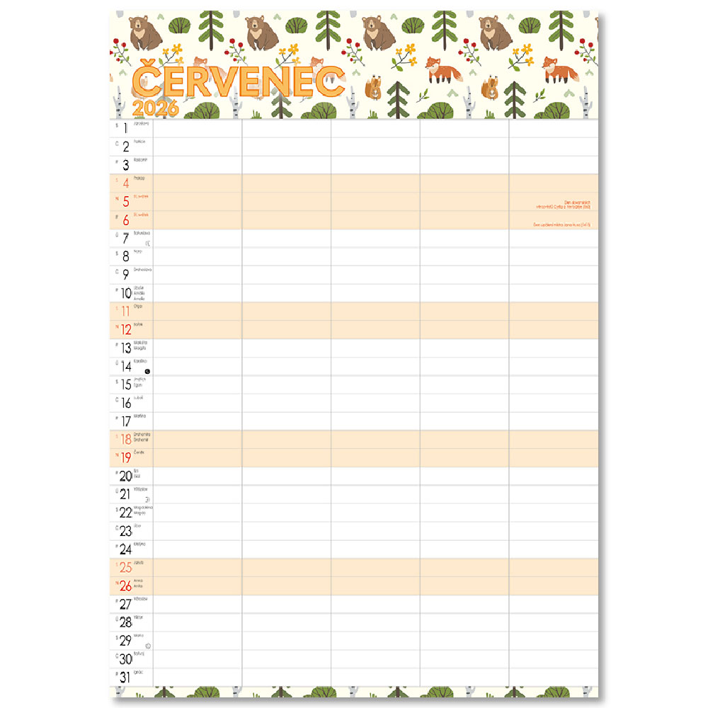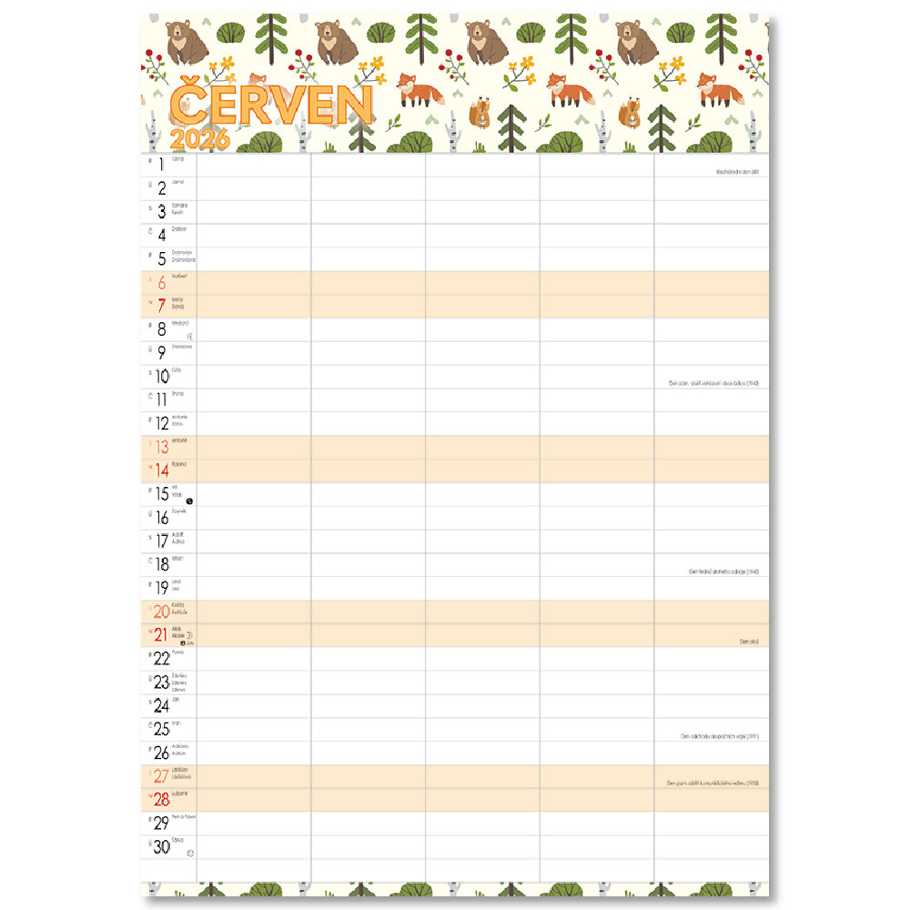 Obsahuje: poznámkové, menné kalendárium so štátnymi sviatkami,