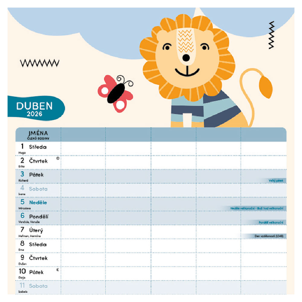 Nástenný kalendár 2026 Rodinný plánovací kalendár