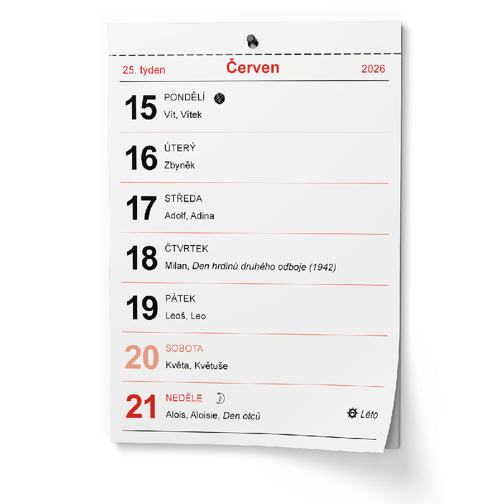 Kalendárium: české týždenné menné