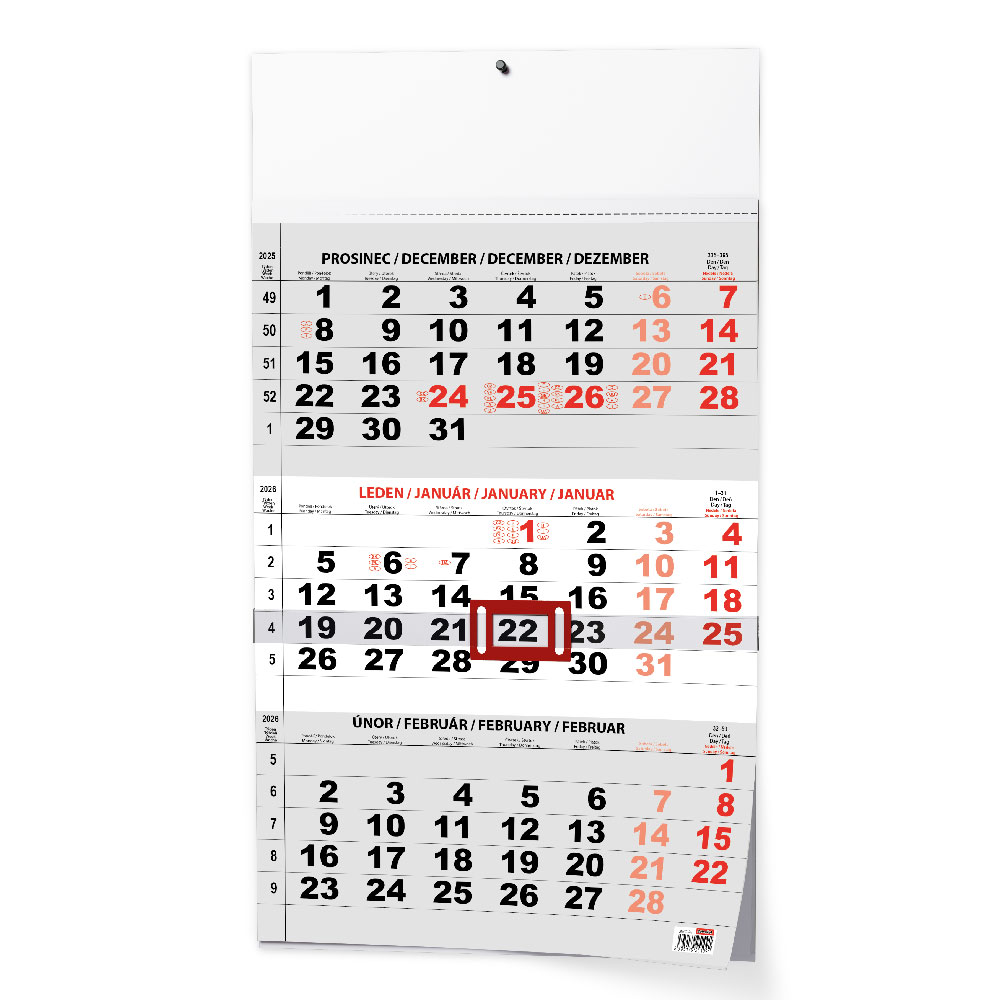 Nástenný kalendár 2026 Trojmesačný - čierny