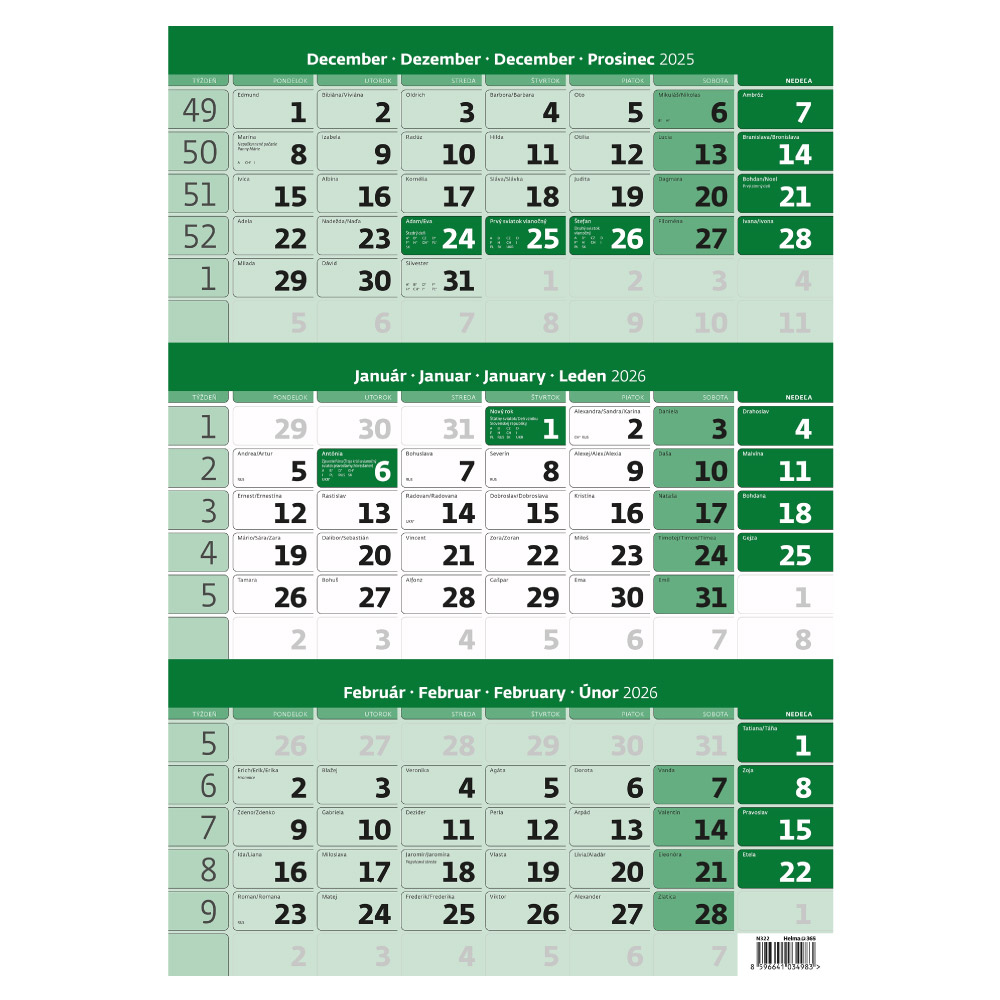 Nástenný kalendár 2026 - Trojmesačný kalendár zelený