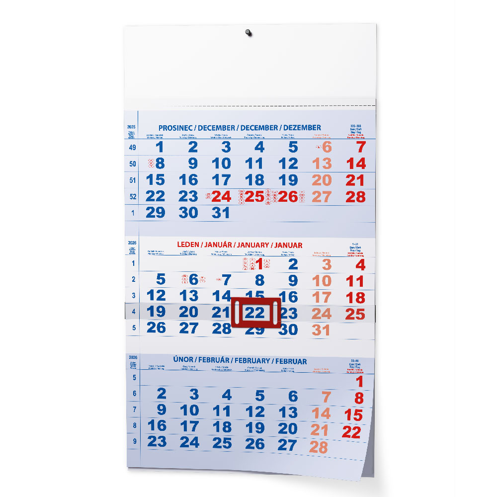Nástenný kalendár 2026 Trojmesačný - modrý