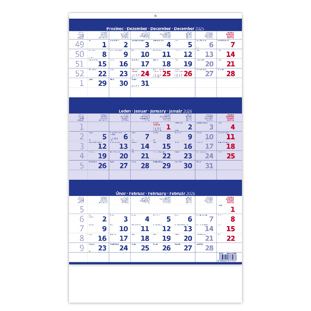 Nástenný kalendár 2026 - Trojmesačný modrý