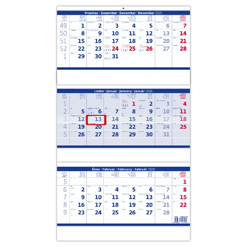 Nástenný kalendár 2026 - Trojmesačný skladaný modrý