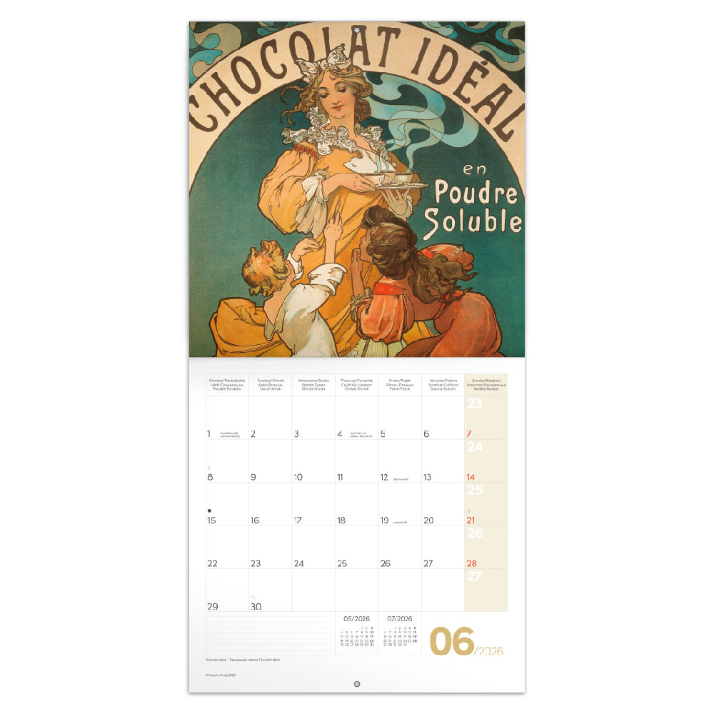 Nástenný poznámkový kalendár 2026 Alfons Mucha