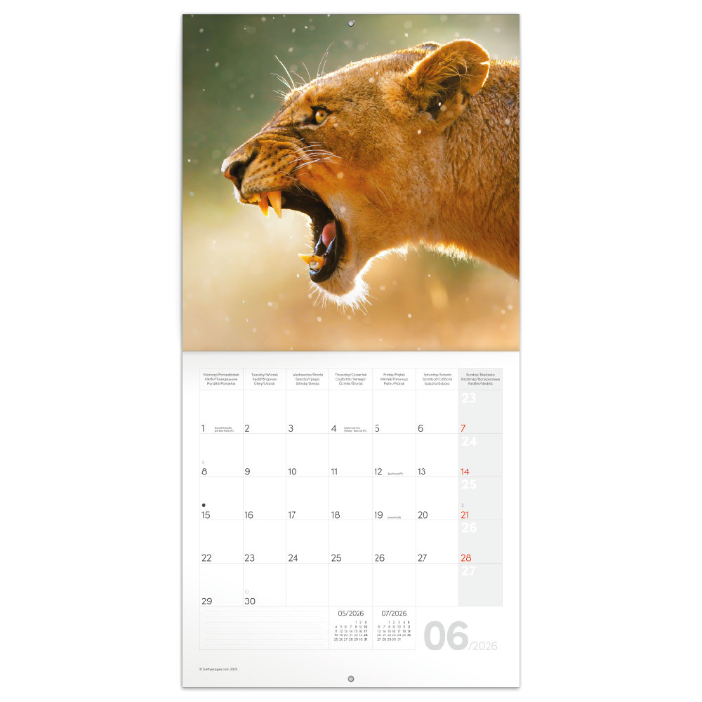 Nástenný poznámkový kalendár 2026 Divoké zvieratá