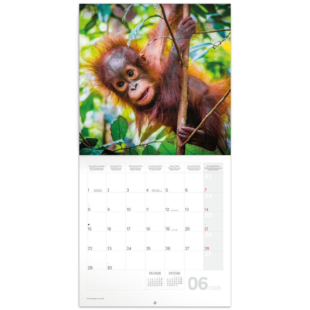 Nástenný poznámkový kalendár 2026 Mláďatá
