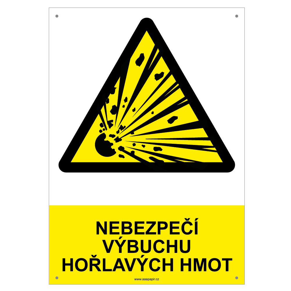 NEBEZPEČÍ VÝBUCHU HOŘLAVÝCH HMOT - bezpečnostní tabulka s dírkami, plast A4, 2 mm