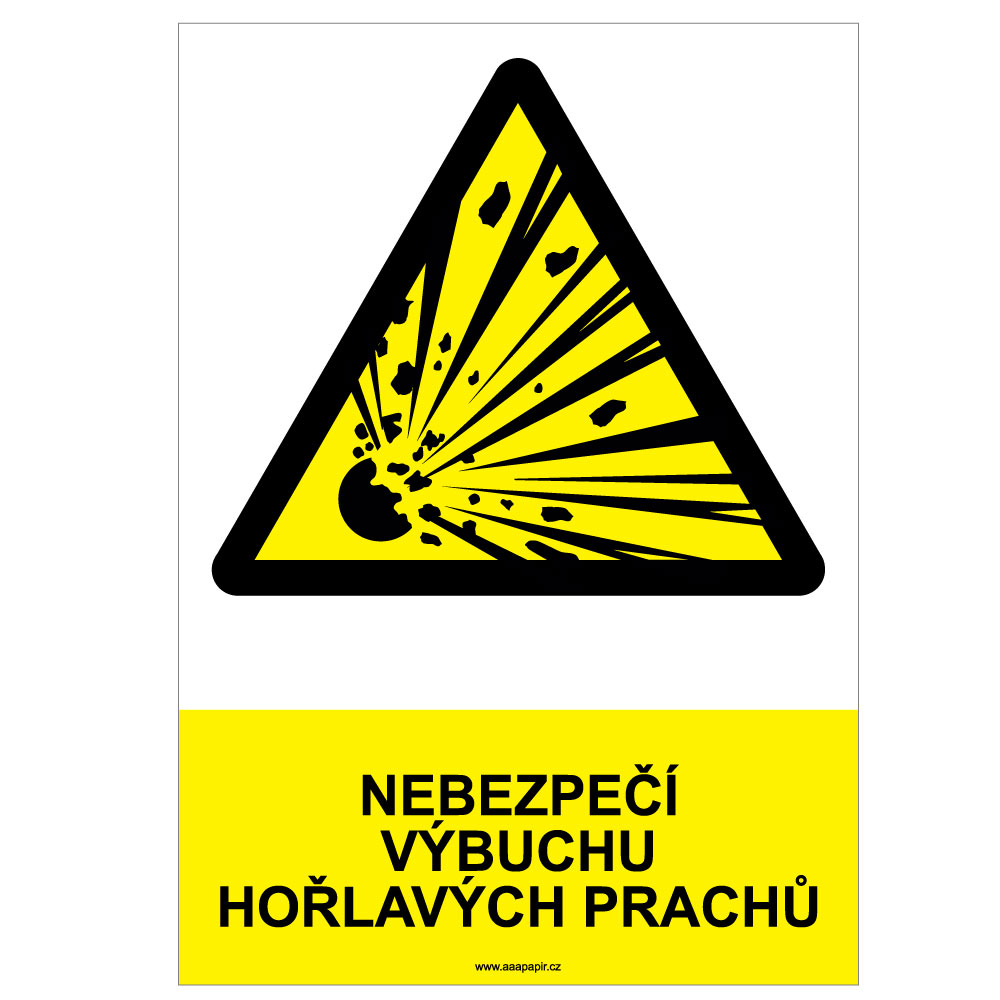 NEBEZPEČÍ VÝBUCHU HOŘLAVÝCH PRACHŮ - bezpečnostní tabulka, samolepka A4