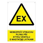 NEBEZPEČÍ VÝBUCHU PLYNU PŘI STYKU VENTILU S MASTNÝMI LÁTKAMI - bezpečnostní tabulka, plast A4, 2 mm
