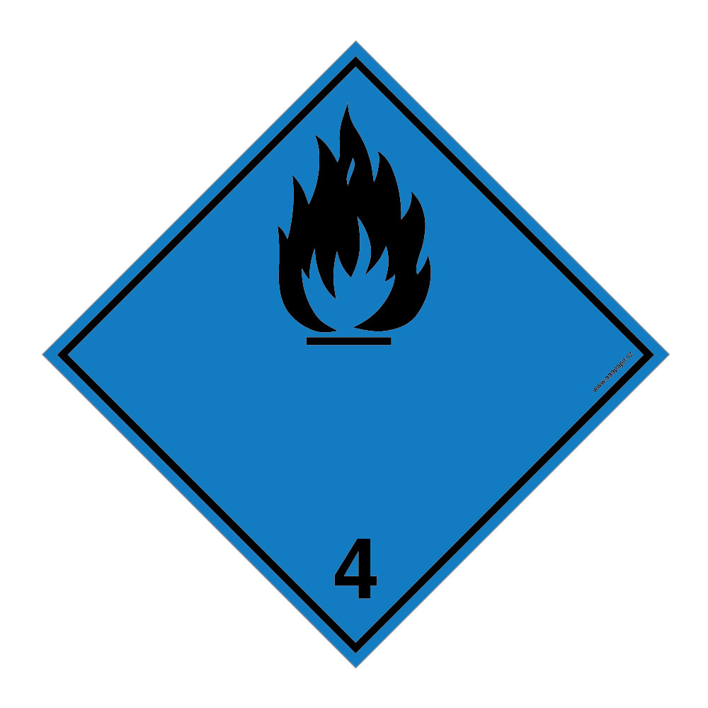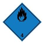 Nebezpečí vyvíjení hořlavého plynu při styku s vodou č.4 černý symbol, samolepka 100x100 mm