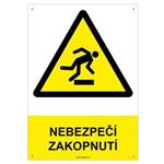 NEBEZPEČÍ ZAKOPNUTÍ - bezpečnostní tabulka, plast A4, 2 mm