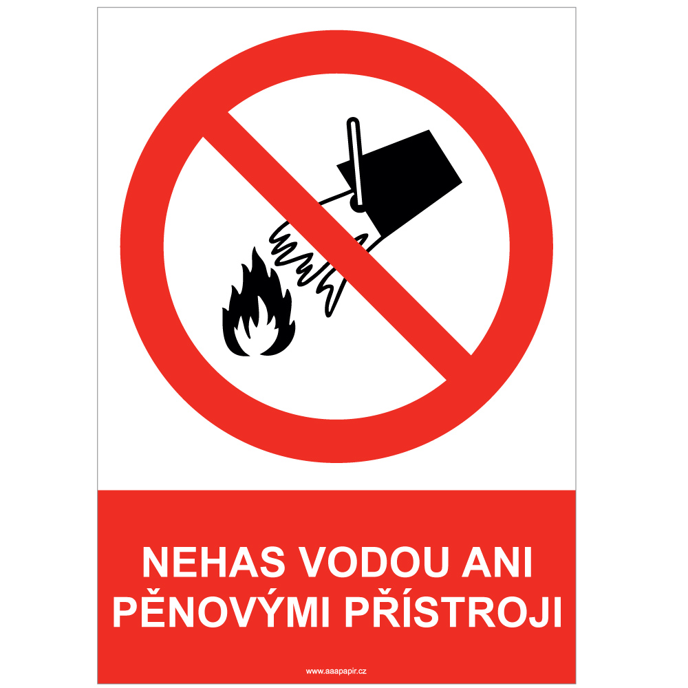 NEHAS VODOU ANI PĚNOVÝMI HASÍCÍMI PŘÍSTROJI - bezpečnostní tabulka, samolepka A4