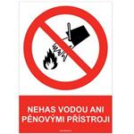 NEHAS VODOU ANI PĚNOVÝMI HASÍCÍMI PŘÍSTROJI - bezpečnostní tabulka, plast A5, 0,5 mm