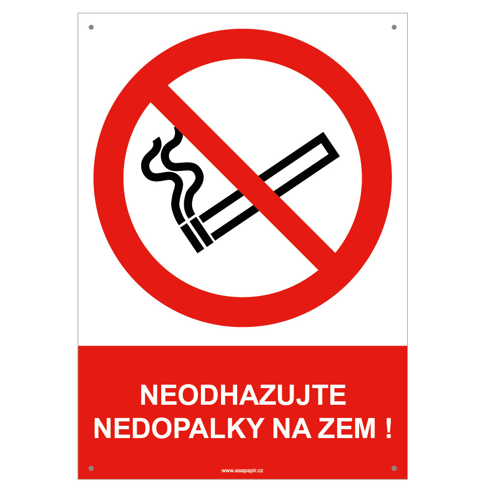 NEODHAZUJTE NEDOPALKY NA ZEM! - bezpečnostní tabulka s dírkami, plast A4, 2 mm