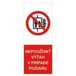 Nepoužívať výťah v prípade požiaru - bezpečnostná tabuľka, plast 1 mm 80x150 mm