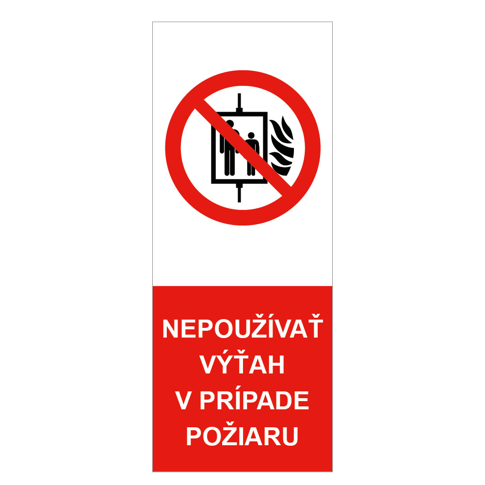 Nepoužívať výťah v prípade požiaru - bezpečnostná tabuľka, samolepka 120x300 mm