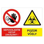 Nepovolaným vstup zakázaný-Pozor včely, kombinácia, samolepka 210x148mm