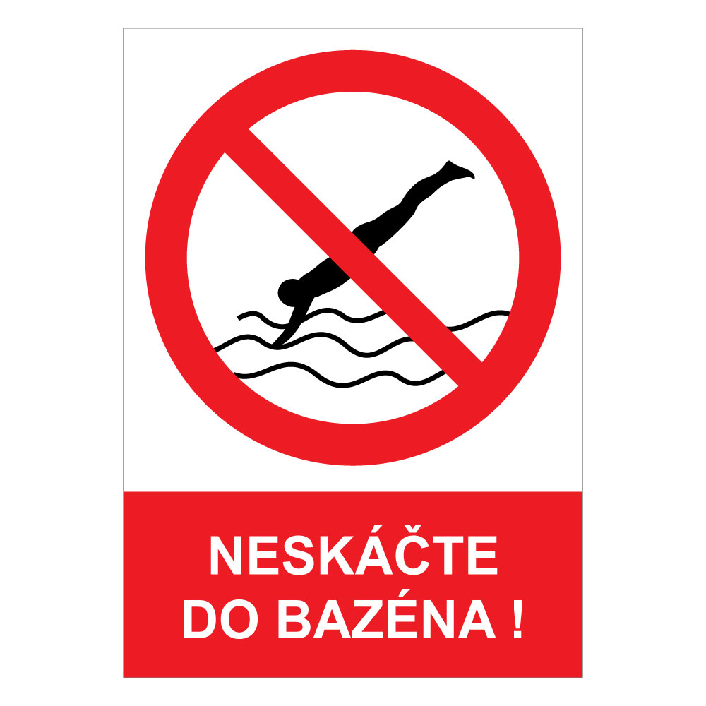 Neskáčte do bazéna! - bezpečnostná tabuľka , plast A5, 0,5 mm