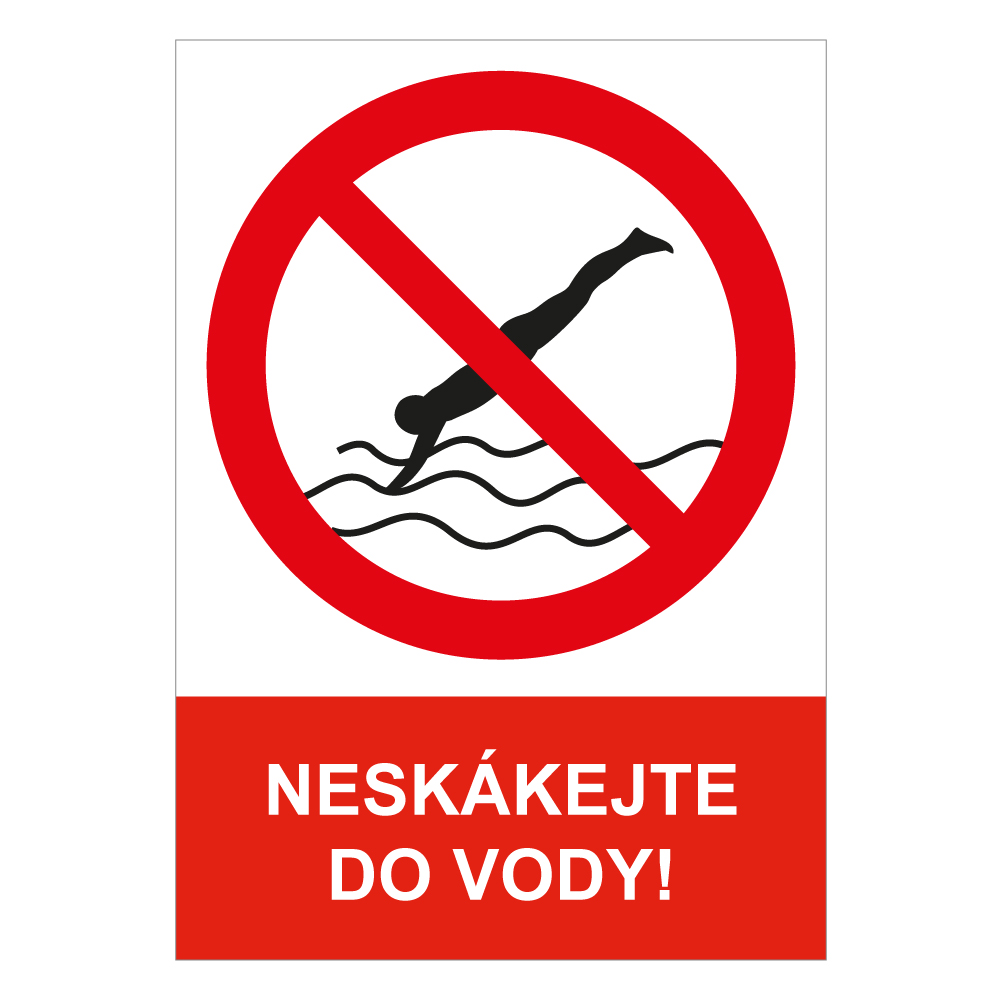 NESKÁKEJTE DO VODY - bezpečnostní tabulka s dírkami, plast A4, 2 mm
