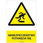 NIEBEZPIECZEŃSTWO POTKNIĘCIA SIĘ - znak BHP, płyta PVC A4, 0,5 mm