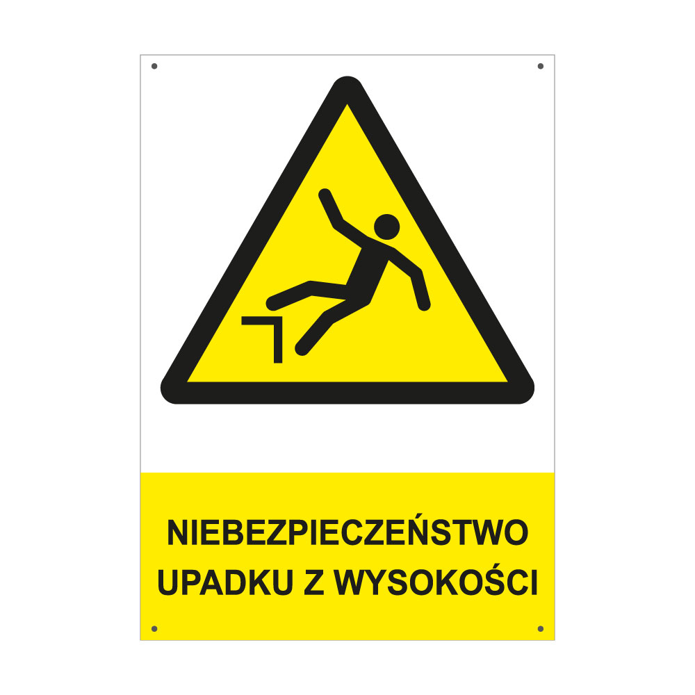 NIEBEZPIECZEŃSTWO UPADKU Z WYSOKOŚCI - znak BHP z dziurkami, płyta PVC A4, 2 mm