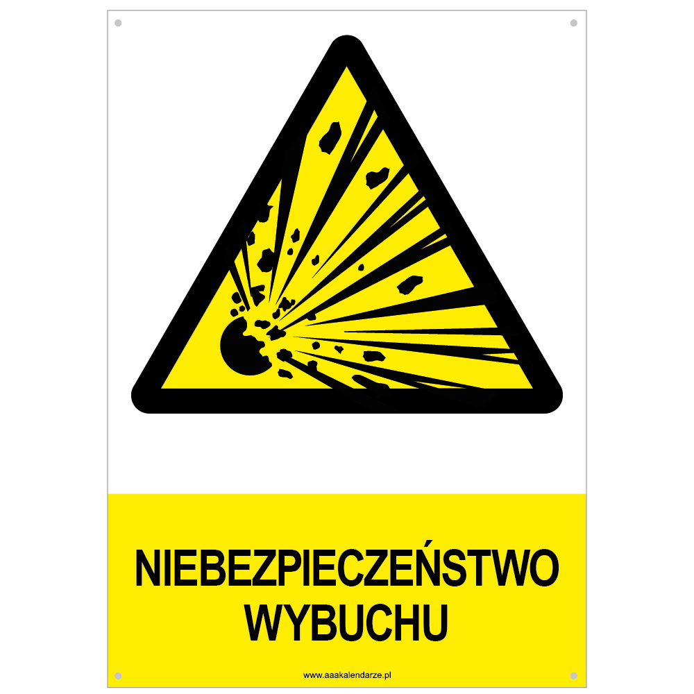 NIEBEZPIECZEŃSTWO WYBUCHU - znak BHP z dziurkami, płyta PVC A4, 2 mm
