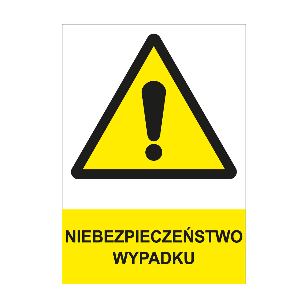 NIEBEZPIECZEŃSTWO WYPADKU - znak BHP, naklejka A4