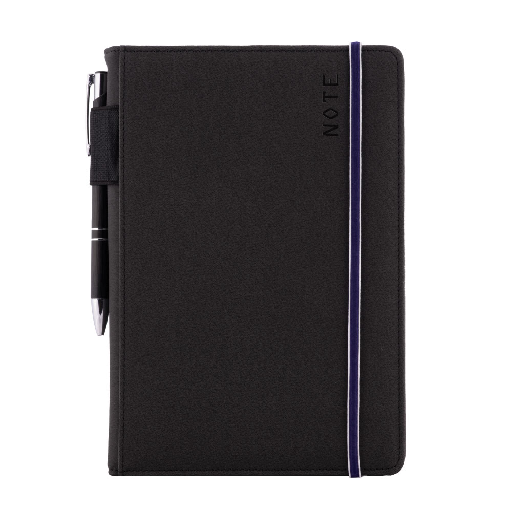 Notes AMOS A5 čistý - čierna/modrá gumička