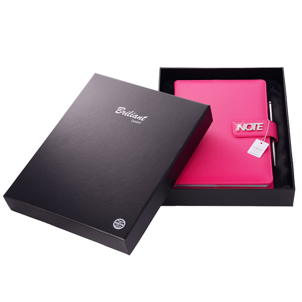Notes je balený v darčekovej krabičke vystlanej saténom.