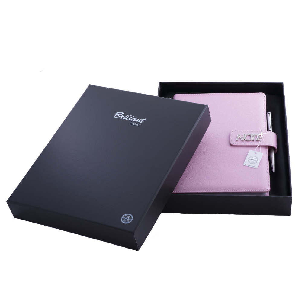 Notes je balený v darčekovej krabičke vystlanej saténom.