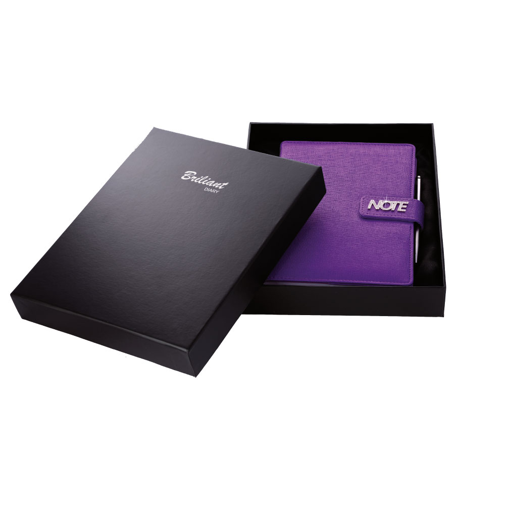 Notes je balený v darčekovej krabičke vystlanej saténom.