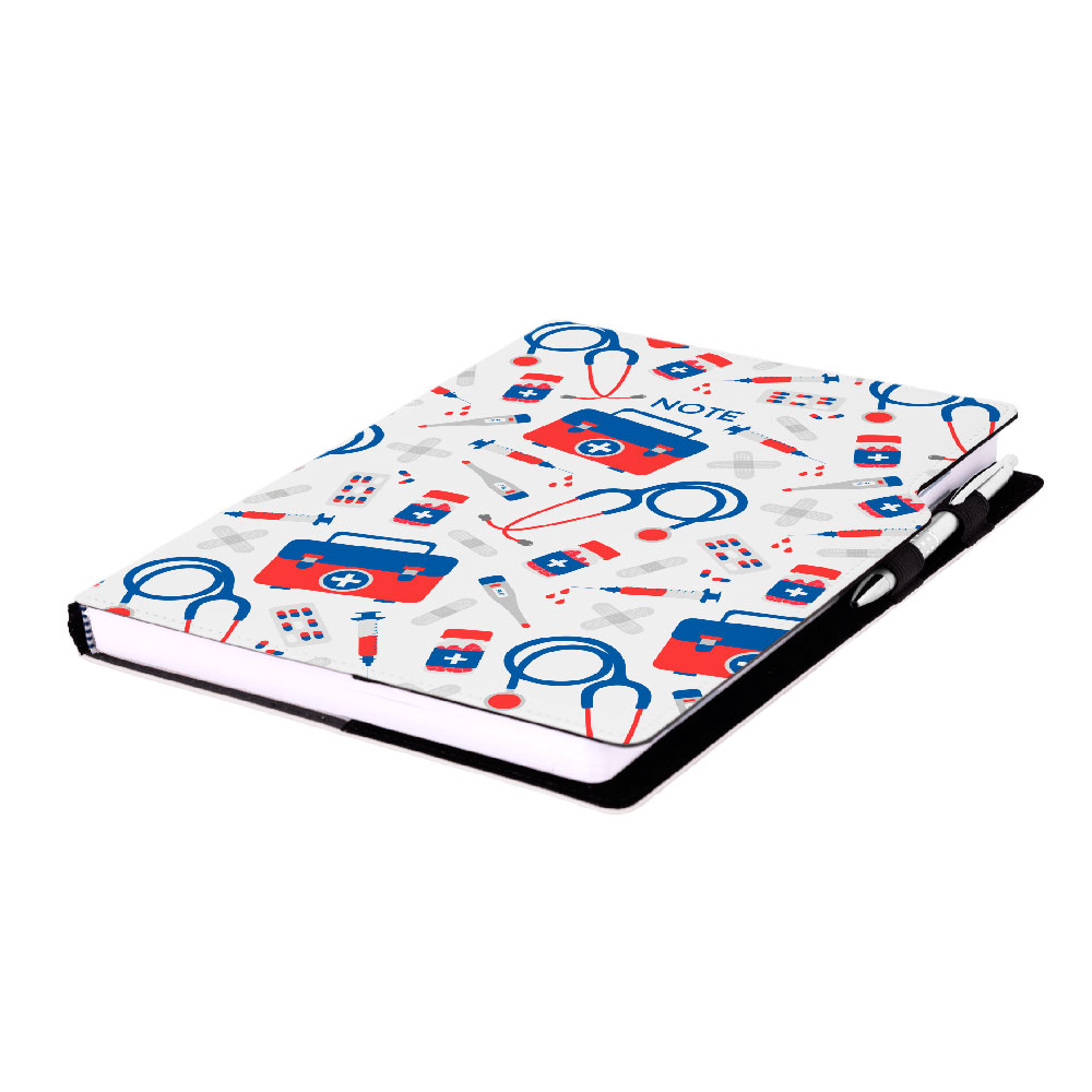 Súčasťou notesu je pútko pre pero a kovová propiska.