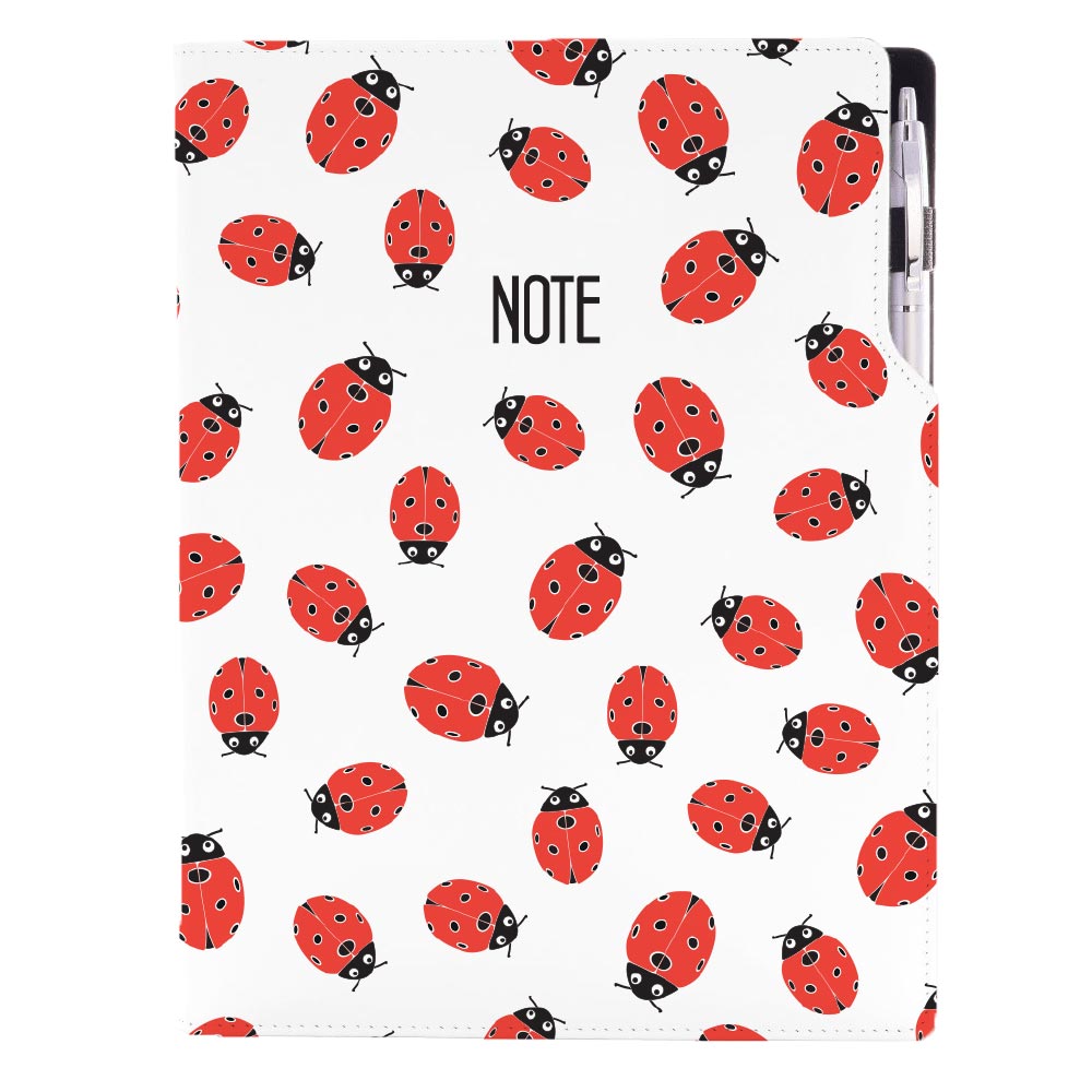 Súčasťou notesu je pútko pre pero a kovová propiska.