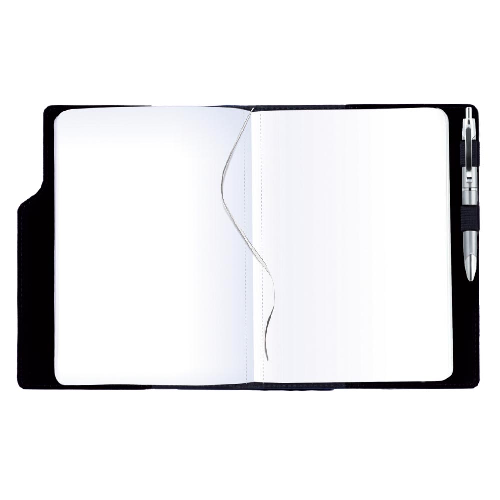 Súčasťou notesu je pútko pre pero a kovová propiska.
